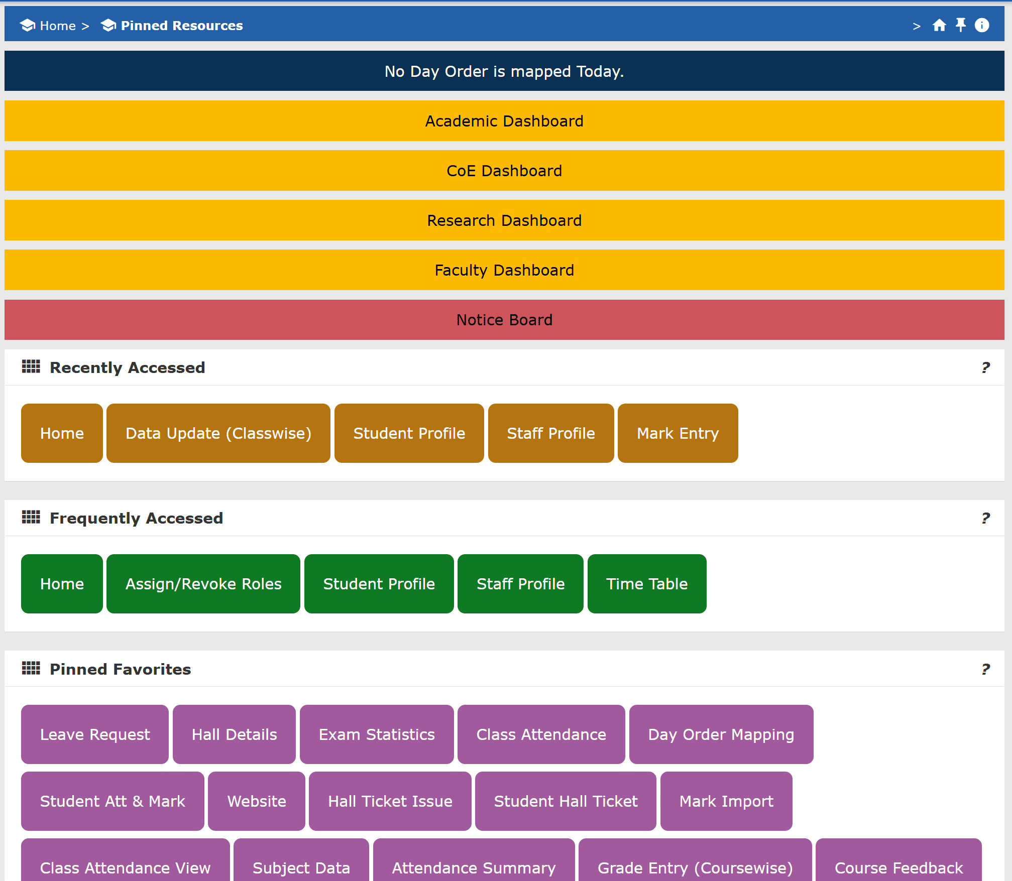 The home page shows recently accessed, frequently used, and pinned resources for quick navigation.